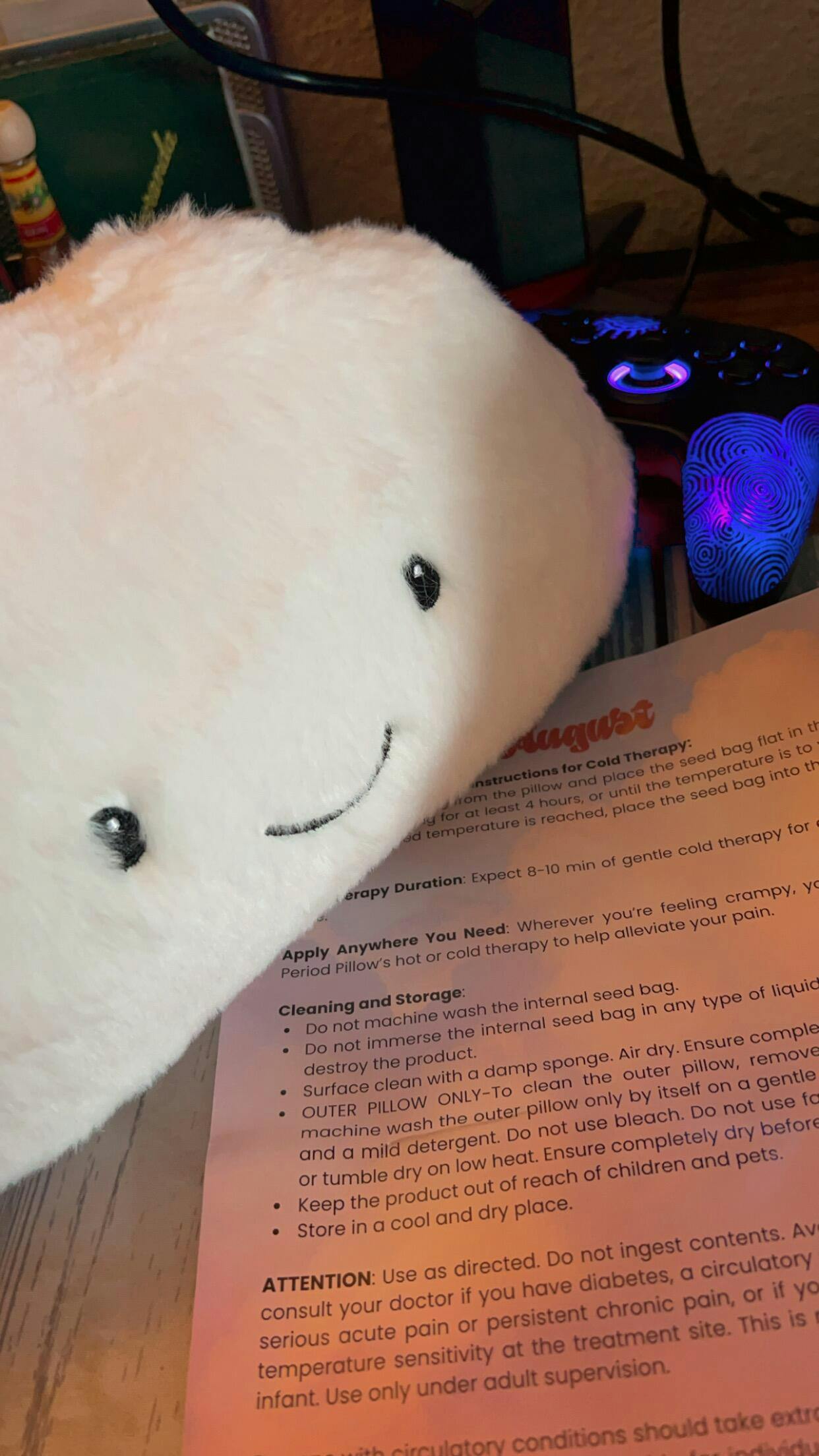 The shipping was very fast. So far, I used it for the heat Therapy and it works like a charm. I’ve been looking for a heating pad for a minute now because I never had one. But this one right here is a really cute Heating pad. Also it’s a stuffed animal (cloud) so you can use a decorate your space. To be honest is a plus that it’s a heating/cooling pad and a stuffed animal. 100/10 for me🩵