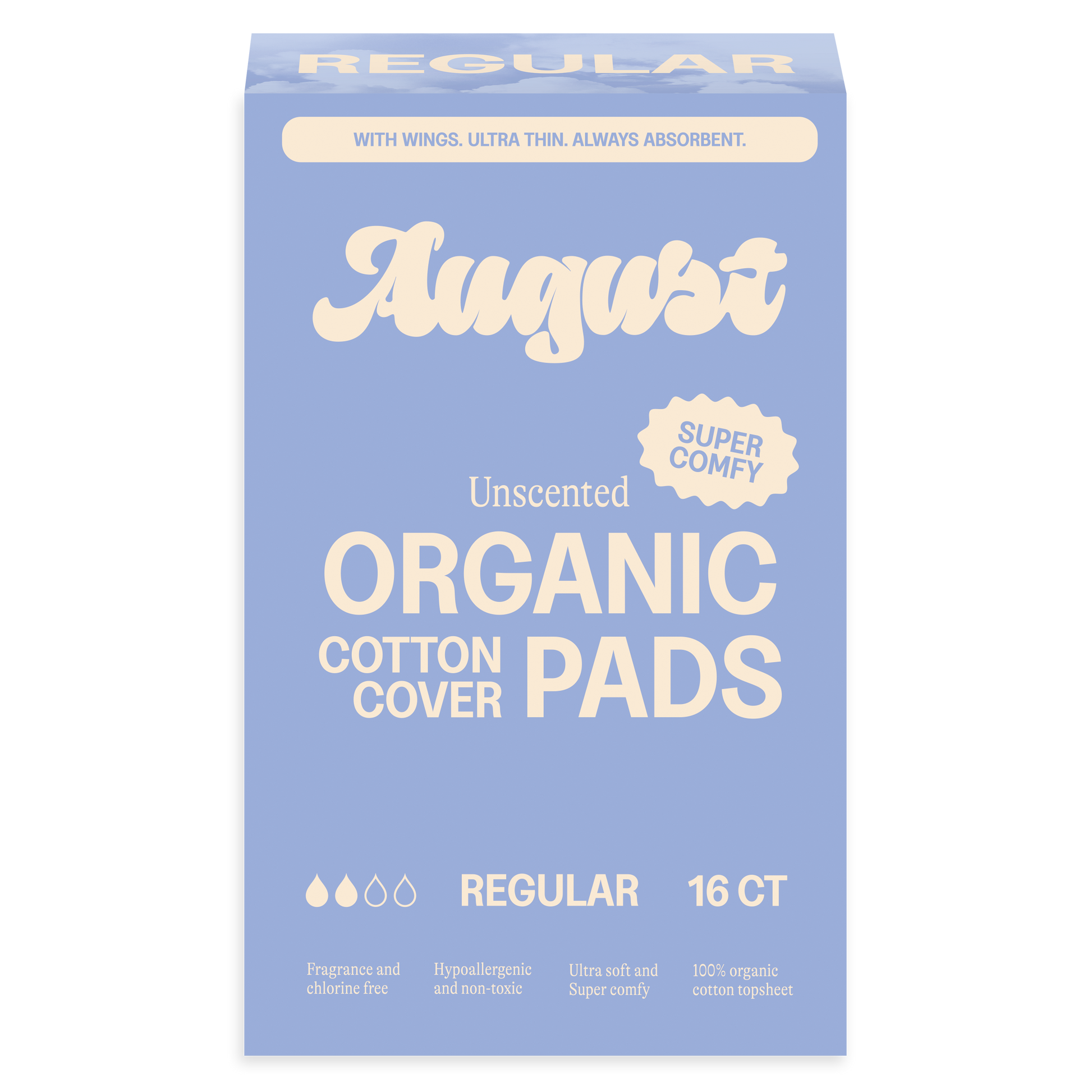 Tailored for a light to medium flow (and previously known as "Day Pads"), our Regular Pads offer unparalleled comfort and protection. The 100% organic cotton top sheet is soft, hypoallergenic, and fragrance-free, while the eight layers of protection keep you secure. With compostable wrappers, these pads are as kind to the planet as they are to you. And if it couldn’t get any better, August regular pads are more absorbent than the leading natural brand regular pad!